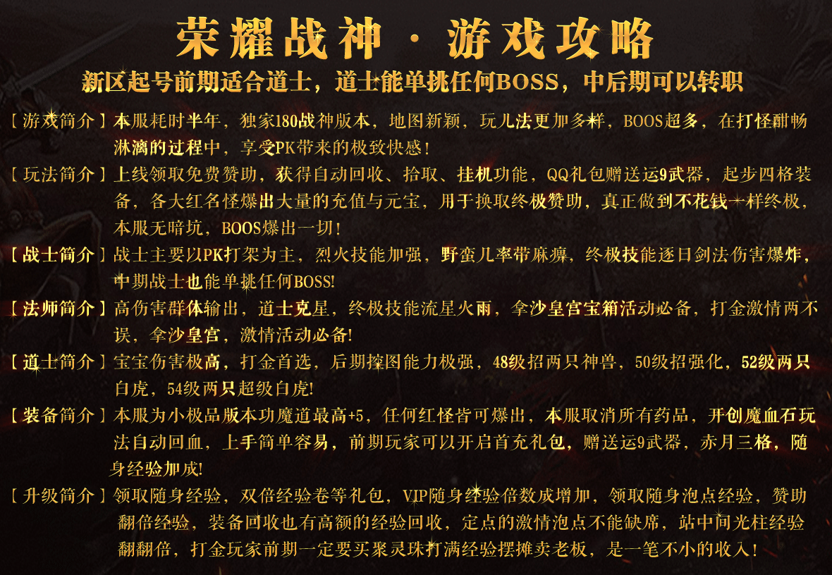 玩法介绍:本服为1.80复古版本+4+5小极品,装备可直接回收积分,非常适合长期玩家,真正的福利良心服!